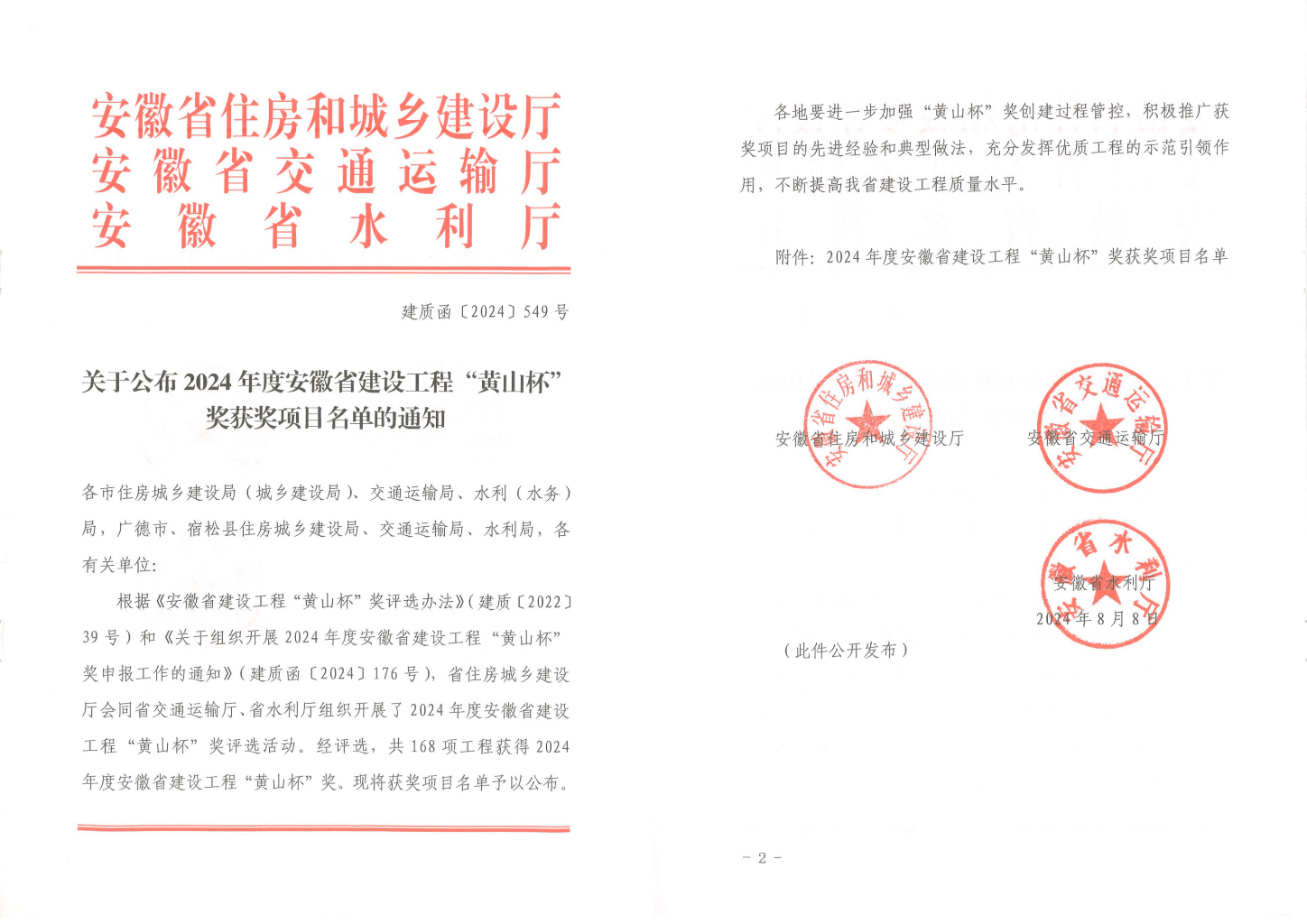 近日,安徽省住房和城鄉(xiāng)建設(shè)廳公布了2024年度安徽省建設(shè)工程“黃山杯”獲獎名單,安徽池州排水有限公司所承建的“天堂湖污水處理廠工程”位列其中。獲獎項目簡介......